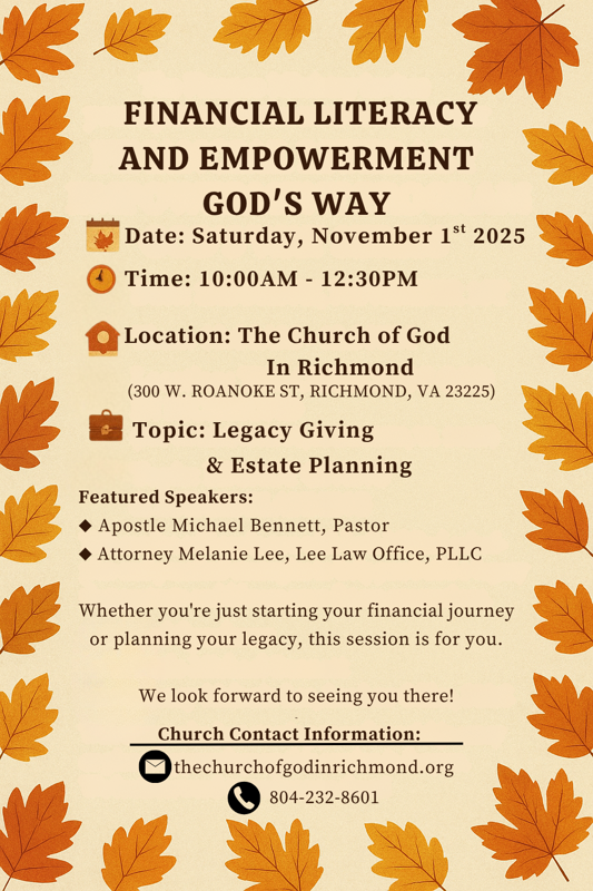 300 West Roanoke St, Richmond, VA 23225 ~ 804-232-8601 ~ email – churchofgodinric@aol.com